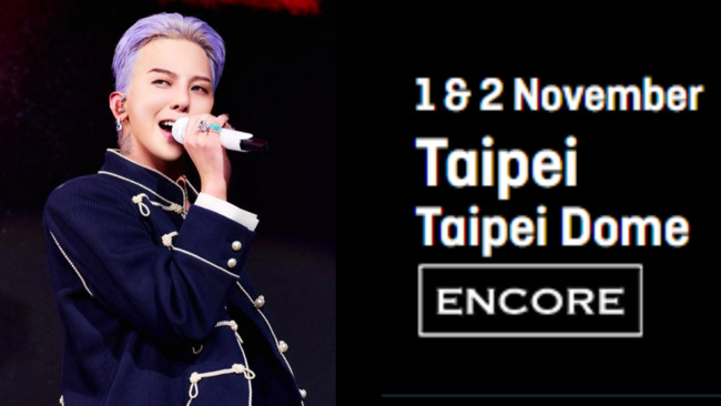 南韓天王G-DRAGON 剛結束7月在台北小巨蛋的演唱會,又帶來好消息,將於11月於大巨蛋舉辦安可場演唱會。根據官網資料顯示,「1 & 2 November Taipei Taipei Dome ENCORE」並寫著COMING SOON,相關的售票資訊有待主辦單位公布。
