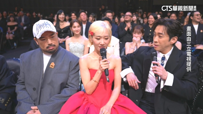 桃紅色洋裝喜氣洋洋,搭配結婚進行曲,典禮主持人Lulu,還挑了個「好位置」坐下,一邊是阿娜答一邊是過去式,確認大家截圖截好了才繼續講話,Lulu說:「最熟悉的陌生人阿達桑,第一次入圍剛好坐在我旁邊,你們的紅毯都已經蓋到我身上。」