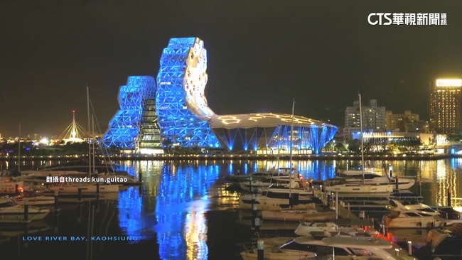 韓國女團TWICE,出道滿十週年,即將在11月22到23日登上高雄世運主場館演出,今(15)日有快閃店在百貨搶先登場,吸引粉絲一早就來排隊,很期待偶像到高雄開唱,高雄景點晚上也開始亮起藍燈,要歡迎TWICE到來,高雄流行音樂中心,藍色燈光照映,水面倒影超級漂亮。