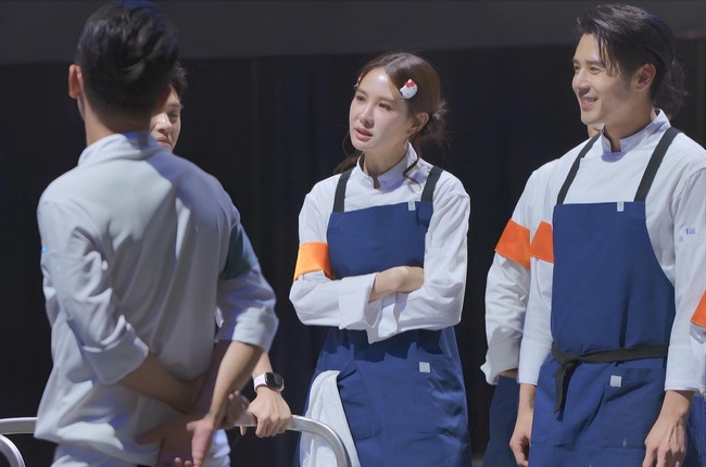 回顧上週激烈的「團體賽」,兩大戰隊肩負在限時180分鐘內完成四道料理的艱鉅任務,雪上加霜的是,製作單位竟在最後階段臨時加碼第五道甜點考題,殺得兩隊措手不及。在兩大戰隊忙碌備戰、時間倒數的緊繃時刻,胡宇威卻上演了爆笑的「甜蜜間諜」戲碼!他悄悄深入妻子陳庭妮的隊伍後方,探頭探腦偷聽她們確認菜品介紹,並幽默稱讚:「好棒喔!」陳庭妮當下才發現老公竟然偷偷摸摸潛入「敵營」,頓時又驚又氣又好笑,直接送上一記「愛的拳頭」,嬌嗔說道:「你怎麼可以來我們這邊!」最後甚至被陳庭妮上前揮手驅趕:「OK不要來干擾我們!謝謝送客!」這對敵對夫妻檔隔空放閃的逗趣互動,讓現場歡笑連連。