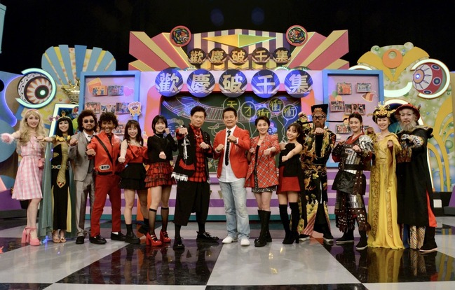 舒子晨(左起)、Albee、陳為民、潘若迪、巫苡萱、籃籃、曾國城、徐乃麟、張文綺、徐凱希、馬力歐、林逸欣、張棋惠、陳隨意。《天才衝衝衝》嘉賓們扮成古今中外名人蒞臨現場祝