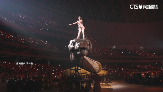 天后蔡依林30日晚間首度攻進台北大巨蛋,吸引近4萬名粉絲朝聖。向來講求完美、呈現高規格演出的她,這回再度顛覆大家想像,不只沒有一開始就登台,而是先以「巨型慶典公牛」巡場,接著才以蒙面方式驚喜現身。而蔡依林唱到第三首歌時,更站上30公尺長的巨蟒,沿途駕馭牠繞場開唱,令全場陷入瘋狂。