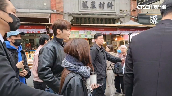 韓國男星崔振赫1日來台灣參加粉絲見面會,活動結束後,他沒有先回韓國,昨(2)日在工作人員陪同下,現身年貨大街,男神駕到引起陣陣驚呼聲,崔振赫本人倒是很自在的逛吃,看到麻荖還停下腳步試吃,展現親和力。