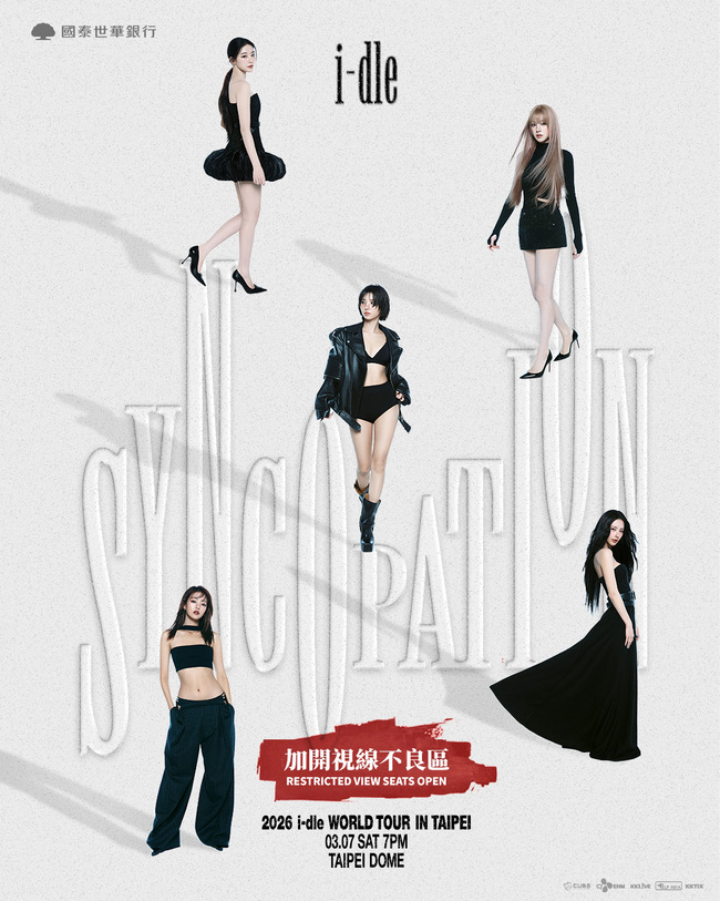 演唱會主辦方則是驚喜宣布「2026 i-dle WORLD TOUR [Syncopation] IN TAIPEI」,將於明天中午12點重新開賣,包含看台區域視線不良區及全區域之退票,將會同步釋出門票在KKTIX開買,歌迷們務必把握最後機會。