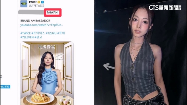 TWICE的官方X帳號發文,宣傳周子瑜擔任超商品牌大使,眼尖網友在文案中看到「TAIWAN」字樣,紛紛激動表示,以前TWICE官方帳號都沒提過TAIWAN,真的是「有生之年系列」,但也有人指出,這是因為代表超商的台灣活動,不過粉絲們還是為周子瑜感到特別開心。