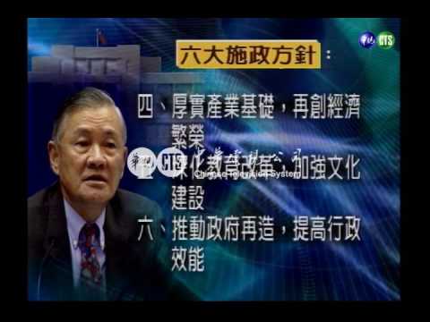 行政院長唐飛,中午以便當餐敘的方式,主持新內閣上任之後的第一次行政院院會。新手上路,唐飛特別向內閣成員來一場精神講話,強調政權交替不是否定過去的一切,而是要丟掉舊包袱,該改的才改。唐飛同時宣示了未來六大施政方針,而國家安全、改善兩岸關係,則是被列為第一重要的目標,他希望用政績來兌現全民的承諾。
