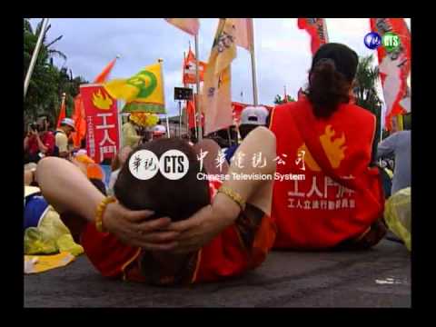 今天是五一勞動節,上萬名勞工沒有休息、反而以走上街頭的方式,抗議失業率居高不下。有些勞工翻牆進入行政院,和警方發生拉扯。總統府前也不平靜,失業勞工向警方蛇籠丟擲抗議牌,還有人丟寶特瓶被帶回派出所。