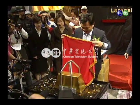 在將近一百多名警力層層包圍、戒護下,為了打破世界紀錄,台北縣政府花了一億台幣,鑄造了大金磚,由八名大漢吃力地拉進了會場。
