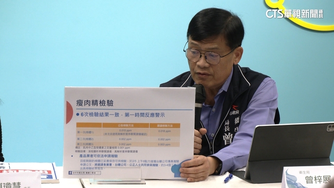 台糖冷凍梅花肉片被驗出有禁藥瘦肉精「西布特羅」,台糖與委外的屠宰廠送驗檢體,動物用藥的殘留量結果都呈現陰性,這把火燒回原本的檢驗單位台中市衛生局,食安處強調,針對抽驗之肉品,以2種檢驗方法進行3次取樣檢驗,6次檢驗結果都檢出陽性,台中市衛生局長曾梓展說:「驗第三次的話還是公告檢驗方法是0.002,建議檢驗方法是0.003。」衛生局強調,不管是檢驗方法或者相關儀器設備都是經過國家認證,但台糖對這個說法卻顯得保留,台糖畜殖事業部執行長吳昭宏說:「這我們不是專家由專家去判斷。」