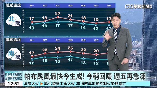 今(23)日大陸冷氣團影響加上南方水氣北移,除了持續偏冷外,降雨機率也會明顯增加,迎風面基隆北海岸及大臺北、宜蘭山區有短暫雨,其他地區也會有局部降雨出現,水氣由南往北逐漸增加,上半天降雨偏向在東半部及中南部,下半天北部地區亦有局部降雨情形,外出建議都要攜帶雨具備用;清晨西半部及東北部低溫約13、14度,花東為15、16度,在竹苗有10度以下低溫出現,白天雲多下雨,天氣依舊偏涼冷,各地高溫回升不明顯,普遍為17到20度,隨著冷空氣逐漸減弱,今晚低溫稍回升,預估為15至17度,不過未來一週皆為涼冷的天氣,外出都要注意保暖;離島氣溫,2澎湖16至18度,金門10至17度,馬祖9至13度。