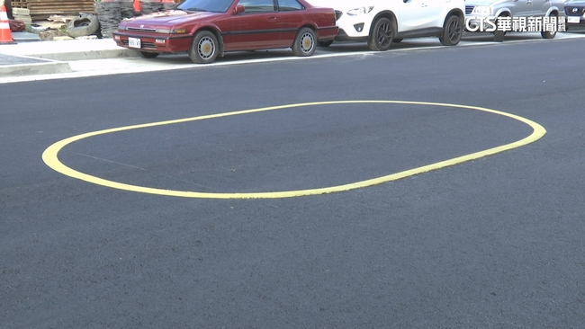 橢圓形中間空心的地方,後續會畫上槽化線,接近路口的雙黃線與雙白線,要把左轉與直行車道做出明顯區隔,但是變換車道的距離不到10公尺,民眾擔心,駕駛可能會反應不及。