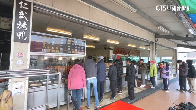 烤鴨店員工VS.顧客說:「來,往前喔。」早上七、八點,高雄知名仁武烤鴨已經大排長龍,記者VS.民眾說:「(你幾點來排的),七點,(七點來排喔),對,(排半個多小時),今天算快,不然都要排一個半小時,拜拜用的,我買沒切的,他們都要買切好的鴨,那比較慢,(你是買整隻的),對,買整隻的都沒切,小孩子過年要回來吃飯。」