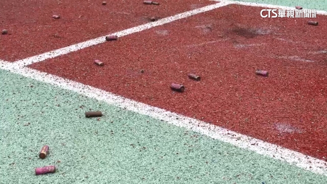 回到學校,操場跑道上散落著不少炮屑,還有幾個地方有明顯燒焦痕跡,雖然受損情況不嚴重,不過校方說,幾乎每年春節,都有人會在操場上玩爆竹,但國小旁就是日治後期木造宿舍,萬一被爆竹煙火波及,後果不堪設想。