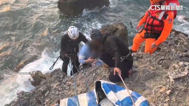 搏命攀壁下降救援,好幾人互相合作,不只靠繩索固定,也跟附近店家借來帆布,鋪在岩壁邊,預防繩索摩擦斷裂,好在女子最後順利脫困,高市消防局鼓山分隊小隊長戴源宏說:「因為受困者是位於海蝕洞的山崖峭壁邊,我們需要用繩索架設的方式,將其人員拖拉上岸。」