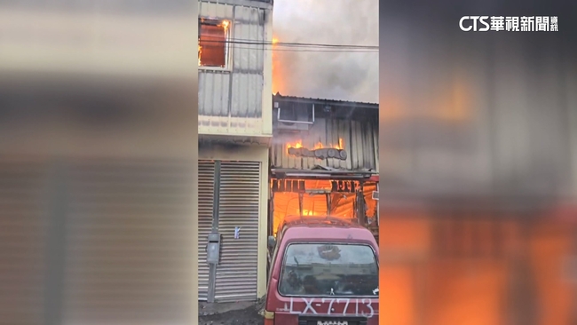 火災地點是在苗栗至公路,15日下午這棟2層樓鐵皮屋,突然起火由於鄰近加油站,附近居民很緊張,消防隊抵達後也趕緊叫支援,還好火勢有被控制住,苗栗縣消防局第一大隊長鄭勝峰說:「那這個部分是,我們過來以後就很快速的,把人帶下來了,目前就發現這兩戶有燃燒,全面燃燒的情形,那沒有人員受困。」