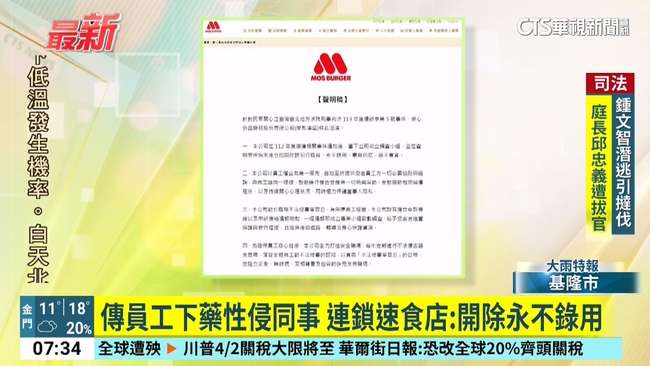 對此,速食店也發出聲明,表示對於職場不法侵害零容忍,毫無包庇、決不寬貸,也在查明事件後將男員工開除,而且永不錄用!