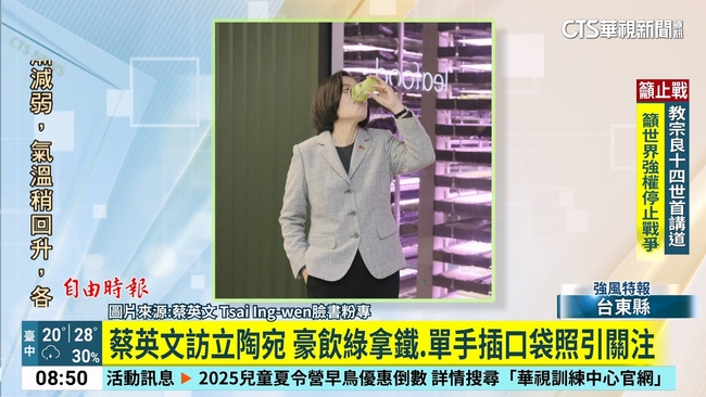 主要是因蔡英文的姿勢,照片裡她豪邁地乾了一杯農場製作的綠拿鐵,一手還插著口袋,立刻獲得6萬人按讚,笑說迷音圖又加一。而蔡英文參觀的這家公司,是台灣和立陶宛合作成立的新創農業科技公司,公司創辦人透露,農場僅花3個月組裝,讓他對談台灣人的專業印象深刻。
