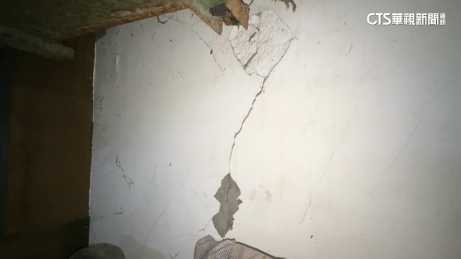住戶石先生來到地下停車場,指著轉彎處上方一根梁柱,出現了長長的裂縫,而且裂縫不小,投訴住戶石先生說:「一個10塊錢都可以塞進去這個縫啊。」縫隙大到可以塞進一枚10塊錢硬幣,而且周邊的牆壁,也不少龜裂,都有填補的痕跡,石先生說,之所以會變成這樣,就是因為車道轉角處的兩根柱子。