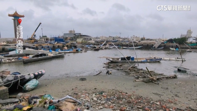 颱風也重創台南市沿海地區,北門區蘆竹溝漁村,養殖牡蠣面積約有200公頃,是台南牡蠣生產重鎮,這次損失慘重,蚵棚傾斜倒塌、許多膠筏受到破壞,包含漁港周圍的房舍也被吹壞,蚵農感嘆心血都泡湯,當地議員甚至在總統賴清德8日前往勘災時,哽咽陳情,說這裡沒電沒水沒網路,就像個孤島。