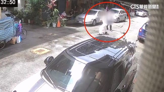 短袖上衣男子,才走出家門,一如既往準備澆花,但這時一名年輕人出現,但下一秒,兩人突然吵了起來,原來這兩人是父子,兒子拿出利器追砍爸爸,兩人就這樣在馬路上大打出手。附近住戶說:「喂,他拿刀。」鄰居聽到爭吵聲,紛紛跑出來查看,幫忙出來勸架。