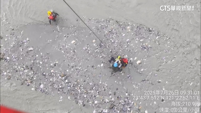 花蓮消防局第二大隊副大隊長高子翔說:「溪水暴漲造成人員受困,那本局立即集結2車8人的人力,前往搜救,那因雨勢過大及天色昏暗,於本日(26日),上午9點30分,由直升機吊掛。」