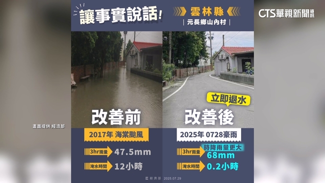 雲嘉南地區,遭受劇烈豪雨侵襲,部分低窪地區嚴重淹水,經濟部昨天發佈5張治水績效圖卡,意外引發兩派網友爭論。