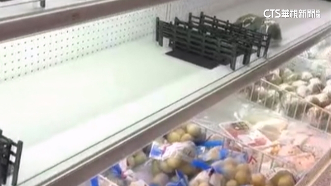 而同樣的畫面,也出現在連鎖超市,葉菜類幾乎要被一掃而空,完全看不到,空心菜地瓜葉的身影,店家外送訂單也接到手軟,店員忙碌的雙手沒停過,兩個購物籃裝得滿滿滿,晚來的民眾能挑選的品項,就只剩下一點點。