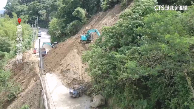 現場人員說:「之前還可以走,只是不好走。」現場工程人員說:「不過現在,越陷越下去,越陷越下去,整個擋土牆全部都倒下去。」現場人員說:「(之前)開車這邊到庄頭差不多40分鐘,(現在從)楠西,大埔過去差不多多一倍時間。」台南市南化區長徐全立說:「先在該4公里處的上邊坡打一條便道,方便讓里民進出。」