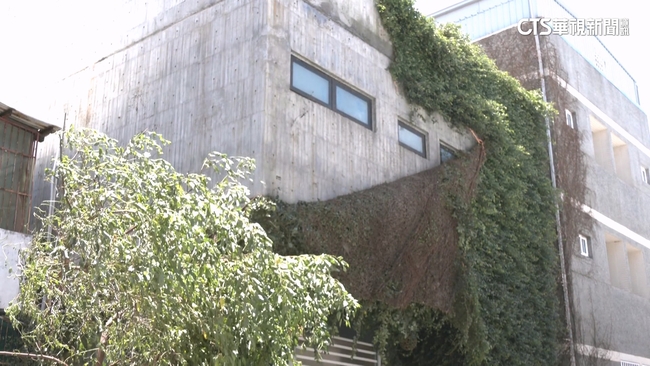 建築物的外牆,就像是脫下一件綠色外套,整片綠意盎然的薜荔就這樣被吹落,露出內部灰色的水泥牆面,對面鄰居看了好心急立刻打電話關心。民宿業者素素說:「是中午左右鄰居打給我,因為我躲在家裡,然後鄰居打給我,說,素素,妳們家外牆。」