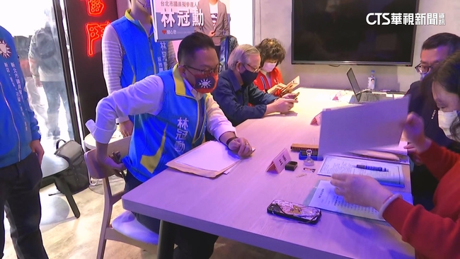戴著青天白日滿地紅口罩,登記黨內初選,他是曾代表國民黨參選台北市議員的林冠勳,因酒駕還找助理頂包曾遭判刑取消提名,現在擔任台北市長蔣萬安的辦公室主任研究員,被周刊爆料。