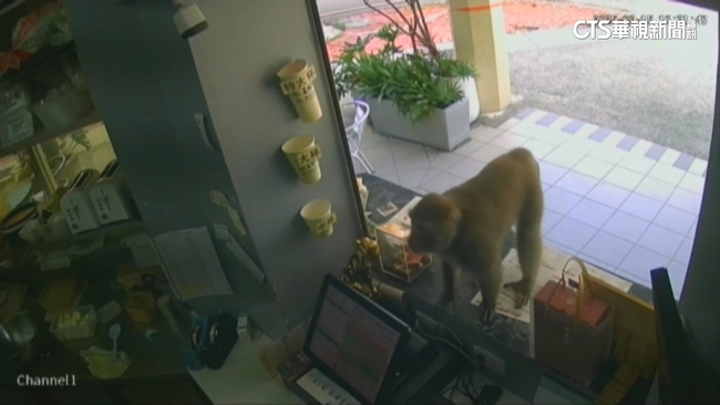 早餐店內驚見不速之客,一隻獼猴在店外找不到食物,趁著工作人員在忙,悄悄潛入,不管早餐店人員怎麼嚇阻,猴子也沒在怕,直接從收銀台大膽入侵,嘴裡叼了廚房的吐司後,用迅雷不及掩耳的速度,直接開溜。