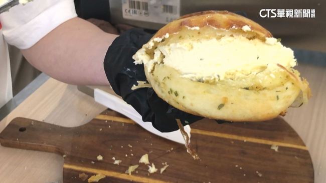 蓬鬆柔軟的麵包,夾入大蒜與奶酪後,香氣陣陣撲鼻而來,顧客們大口咬下,濃郁滋味瞬間在舌尖蔓延開來。記者VS.民眾說:「(這個韓式麵包是第一次吃嗎)對,我在外面沒有看過,(嘗鮮),對。」