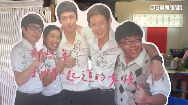 肉圓店門口放著5個人的合照,這是知名國片,那些年我們一起追的女孩,包含主角柯震東在內的5位角色合影看板,但仔細觀察,站在最中間的演員柯震東,眼睛似乎沒對到焦,就連柯震東本人也在社群上發文,他問網友,要不要自己出錢輸出一個比較像自己的版本,送給這間肉圓店,畢竟他在彰化,已經對不到焦14年了。