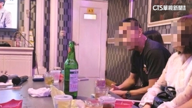 2名女子在小吃部的包廂裡陪著黑衣男子唱歌喝酒,黑衣男子越唱越開心,左手拿著麥克風,右手摟著身穿白色短裙洋裝的女子,身上的T恤印著「火消」2個字,不但身分暴露是雲林消防分隊長,還被查出他是在上班時間,跑出去喝花酒。