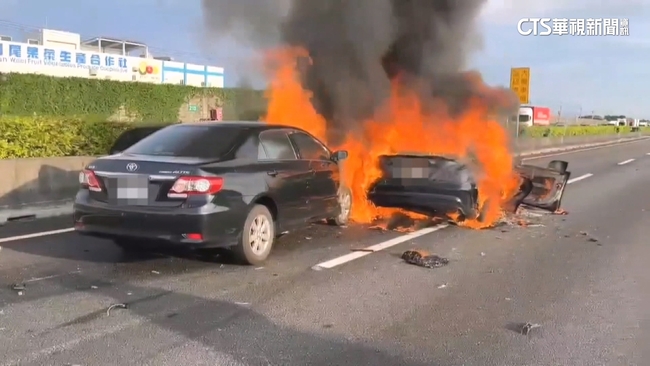 目擊轎車的乘客和駕駛,被黑色轎車撞上驚聲尖叫,2輛車在內側車道,劇烈燃燒,在國道上,變成一團大火球,被撞擊的轎車夫妻倆都有逃出來,坐在路邊相當驚嚇,而撞上貨車的黑車駕駛,是一名18歲的柯姓男子,起火時受困車內當場被燒死。