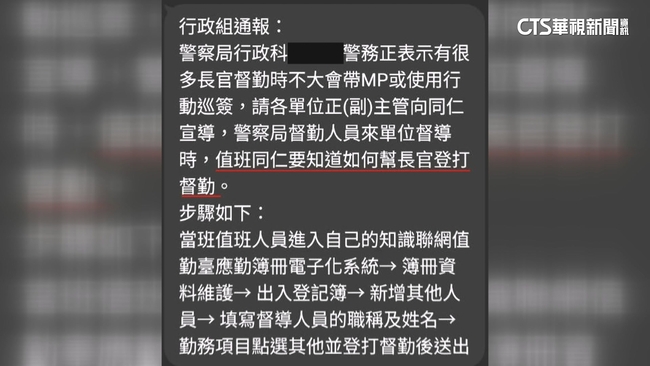 知情人士還透漏,基層員警會這麼生氣,是因為有耳聞真的有同仁,當下沒幫忙而被處分,但不論在警局或是派出所,登打督勤這個步驟並不困難,會造成基層不滿,資深員警認為是溝通的方式並不正確。