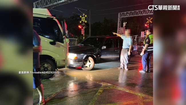時間大約是晚間7點25分,目擊民眾拍下的畫面,一輛轎車卡在鐵軌,前方停了一列火車,現場警鈴聲響起,平交道柵欄也已經放下,那輛轎車闖入高雄楠梓區煉油廠平交道,差點被火車撞上,也造成台鐵誤點大約6分鐘。