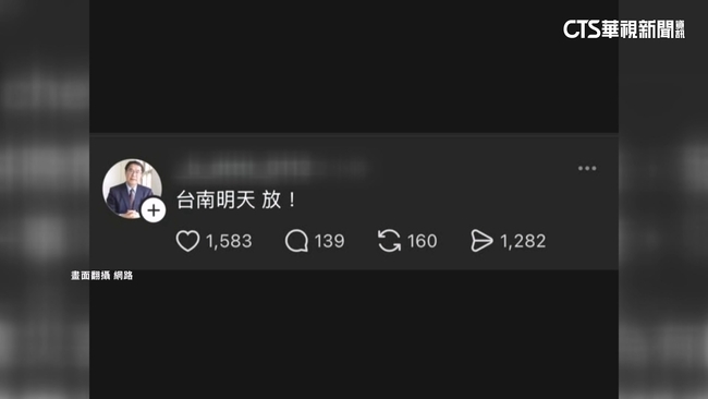 台南市政府昨(21)日晚間10點半就宣布,台南市尚未列入警戒範圍,今(22)日正常上班上課。沒想到網路上,卻有人冒用市長黃偉哲的大頭貼,發布颱風停班課一事,黃偉哲得知後,緊急透過臉書澄清。原本的貼文者,眼看闖禍,也趕緊撤文並且道歉。但這名中學生已經觸法,警方對此展開調查。