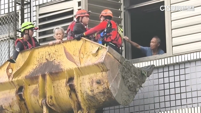 記者盧怡撰說:「您可以看到我後方這邊,這一整片,其實它原本是圍牆,高度有將近一個人這麼高。」消防隊員好急好急,因為還有很多民眾,在等著他們,水勢挾帶泥沙漂流物,空勤直升機從空中巡視,不放過任何一個角落。