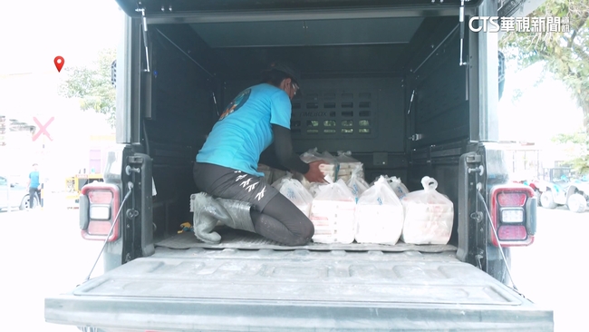 農業部農糧署東部分署人員說:「摩托車機動的提供3個地點,把便當載過去之後,沿線再回頭送給比較年長的,跟所需要的志工們,有需求的話,我們沿線就繼續發送(便當)。」