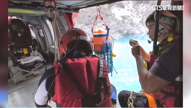 空勤總隊直升機上,特搜人員與成大防災研究團隊蓄勢待發,用吊繩將水位計與人員,垂降至馬太鞍溪堰塞湖湖面,這「投入式水位計」來頭可不小,由日本提供內建壓力式感測器與通訊模組,專為山區土砂壩與天然湖泊設計,目的強化花蓮堰塞湖水位監測。