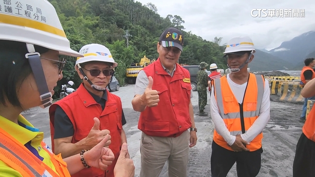 中央前進協調所總協調官季連成說:「豎個大拇指,真的不錯不錯。」總協調官季連成,豎起大拇指比出大大的讚,即使下著綿綿細雨,只戴頂帽子的他,仍到馬太鞍溪涵管便道旁視察,肯定搶通團隊的便民效率,中央前進協調所總協調官季連成(10.21)說:「我到時候回來跟大家報告一下。」