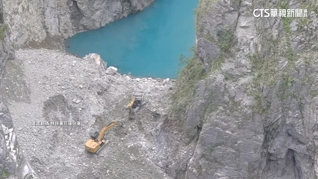 林保署近日針對立霧溪燕子口堰塞湖進行壩體降挖,截至26日,成功下降2公尺。