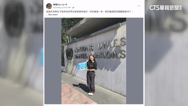 台灣倡議工作者林薇說:「代表同一個組織的另一個代表,他的安全審查,其實在一天之內就通過,聯合國的這一個活動高峰會的祕書處,中國籍的工作人員,就寄信給我說,要求我要去更換國籍,不然就沒有辦法參與,這是一個沒有辦法去執行的不可能的任務。」