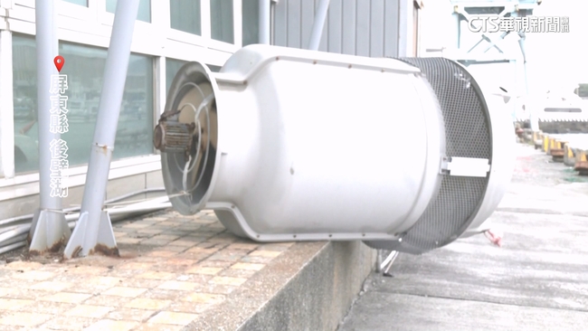 華視新聞記者蕭雅心說:「在我旁邊的是一個冷卻塔,不過它疑似就是被這兩天的強風給吹翻,可以看到它現在是翻落在旁邊的。」整座大型冷卻塔,被風吹到應聲倒塌,好在沒有砸傷人,同樣也受到強風影響的,還有獅子鄉南世村,有打擊練習網被風吹到不斷往前移動。