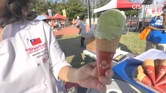 民眾一口接著一口,吃著金牌冰淇淋師做的冰淇淋,鹿港馬拉松除了沿街美食之外,這次還有金牌冰淇淋加入,讓民眾一飽口福。