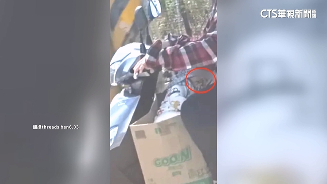女騎士騎車載了個大紙箱,仔細一看,一名幼童睜著圓滾滾的大眼,坐在裡頭,這畫面嚇壞民眾,這樣真的可以嗎?民眾說:「這樣沒有一個保護的措施,要閃邊,或者是什麼,那個小孩子很難保持安全。」