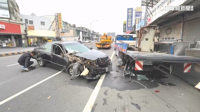 事發在台南永康區小北路,車禍現場一片狼藉,肇事轎車撞成廢鐵,安全氣囊爆開,被波及的車輛也很慘,板金凹陷車殼碎片四散,第一台被撞的白色轎車,整個輪胎甚至掉出來。