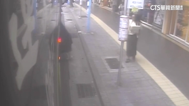 公車進站停在站牌前,一名黑色大衣女子,準備從人行道走上車,但一走到路面沒兩步,女子摔了一大跤,痛得趴在公車門口,遲遲無法站起身,忍痛上車時走路還一跛一跛的,女子控訴罪魁禍首是它。