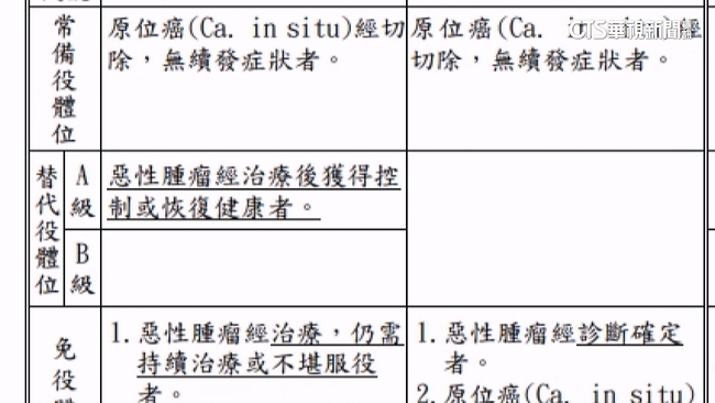閃兵案爆發後,兵役的體位判定也成為討論重點之一。目前國防部預告,免役體位判定將更嚴格,像是罹癌的準役男,如果治療後,病情獲得控制或是恢復健康,還是得要服替代役。但惡性腫瘤的定義如何判定,有醫師表示,這規範的有些籠統。